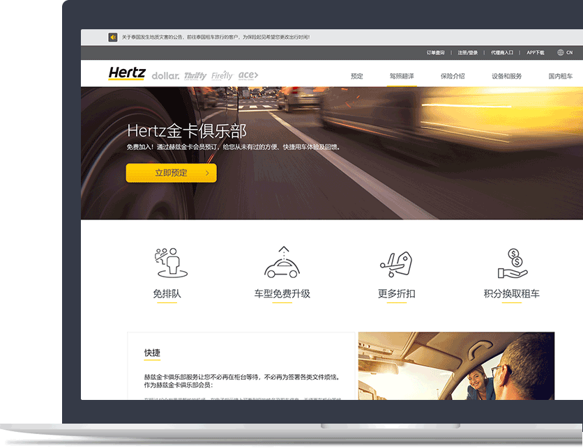 赫兹多种品牌组合在全球五大洲传递着品质服务,呈现出卓越的表现和一致性的服务