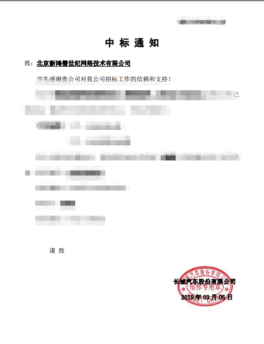 喜报!新鸿儒中标长城汽车网站建设项目