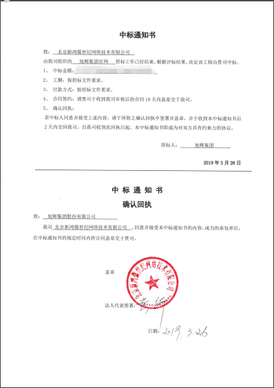 喜报!新鸿儒中标旭辉集团官网建设项目