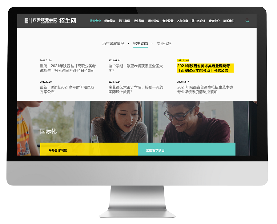 本次项目主要目的是通过对招生网站的升级,面对互联网环境下成长的全新一代准大学生进行品牌宣传,提升西安欧亚学院品牌形象、扩大品牌声量、最终提升招生工作。新鸿儒服务西安欧亚学院已有11年,为数字化校园系统提供迭代更新、系统升级、各平台系统的融合扩展工作,得到了院方各领导的高度认可与支持。