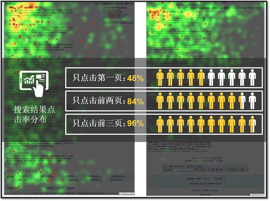 由搜索结果点击率分布数据可以得出:只有占位在前三页才算是有效的信息露出,所以自然搜索优化的目标是尽量让客户想展示的信息展示在前三页,不想展示的敏感信息压制在后三页。SEM\SEO\SMO的优化目标就是发挥各自的优势,让官网或第三方媒体正面信息保持在前三页占位。