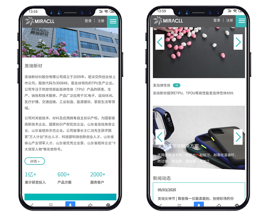 美瑞新材料对关键技术、材料及应用拥有自主知识产权,为国家级高新技术企业、国家知识产权优势企业、山东省准独角兽企业、山东省瞪羚示范企业。公司始终坚持以客户满意和为客户创造价值为导向,践行专业、可靠、创新、合作、环保的经营理念,为客户提供高效、低成本的差异化产品解决方案,在向客户提供高性能TPU产品的同时,也为其提供个性化、专业化的技术服务,满足其定制化需求。本次网站的全新搭建,使美瑞新材料在互联网领域展现出全新的品牌形象。