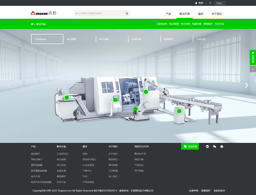 作为企业官网,产品及解决方案栏目是重点栏目,本项目中高松电子的主要产品涉及8大系列,40000+规格产品,解决方案分为6大行业领域,并且与产品相互关联展示。对于庞大的产品品类体系分类,新鸿儒项目组深入调研每一款产品,从产品使用场景到产品具体的参数规格,都做了全面的了解。量身定制产品栏目的展示方式及引导逻辑;并加入产品收藏、产品参数对比、协助选型工具、在线客服坐席等电商化的组件功能,在提升用户浏览体验的同时,也为未来官网电商化发展战略奠定基础。