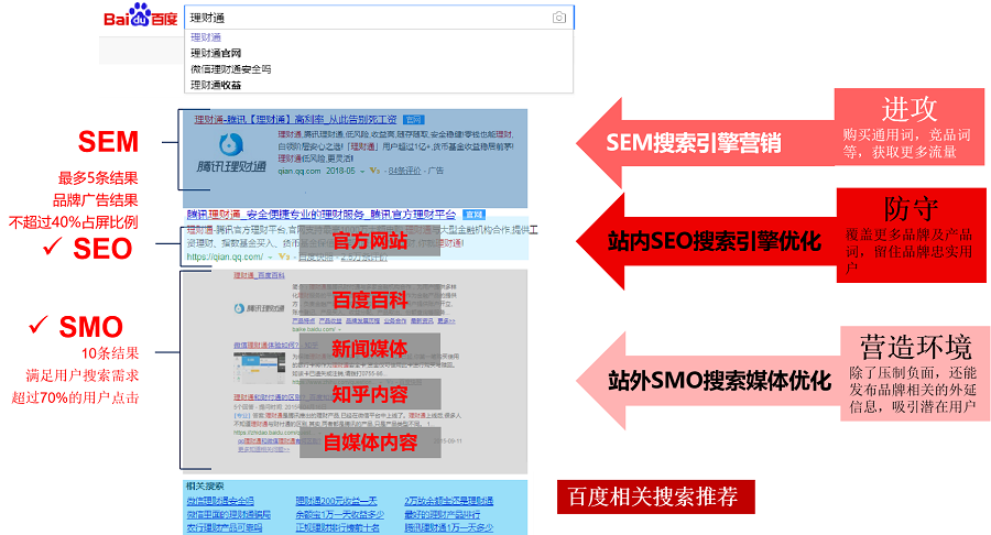SMO优化结果一般会出现在官网下方10条信息,满足用户搜索需求,有超过70%的用户点击浏览,此类信息除了可以压制负面信息之外,还能发布品牌相关的外延信息,营造良好的口碑形象。SMO优化更多起到营造环境,吸引潜在用户的作用。
