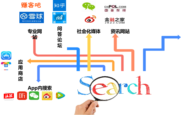据不完全统计,搜索环境随着互联网发展变迁,人们在获取信息时,不仅仅只会通过某一类搜索引擎作为信息来源,而是会通过多种渠道进行查询,综合分析后产生购买决策。在泛搜索环境下用户认知品牌触点逐渐多样化,例如除百度之外的:购物网站、地图、九游平台-九游(中国)一站式服务平台 门户、微博、旅行网站等。 “搜索”无处不在,这便意味着“用户”随时可能获取。